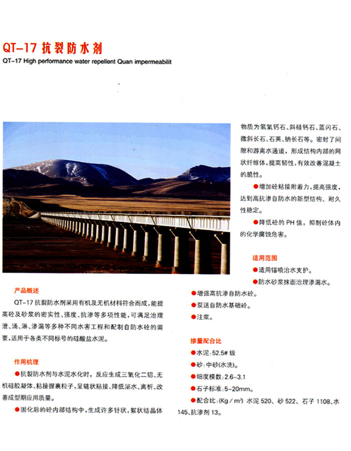 青海西寧橋通建材有限公司一家集減水劑、速凝劑、錨固劑、保塑劑、防腐劑、防水劑、膨脹劑、養護劑、混凝土外加劑及相關建材外加劑的研發、生產、銷售于一體的大型建材公司,位于西寧市城東團結橋,地理環境優越,交通便利。多年來,公司一直致力于高分子化工、精細化工、無機化工域的技術研發與改進,擁有工程師和質量監控設備,相關產品已經通過is09001質量管理體系。公司秉承“行勝于言”的精神,堅持以持續的技術創新不斷地為客戶創造價值,產品及服務涵蓋國防、高鐵、冶金、電力、石化、煤礦、機械、建筑、鐵路等多個行業的工程建設領域。公司產品種類,以用戶要求為高目標,將產品于青海西寧、西藏拉薩、新疆烏魯木齊及各個地縣,贏得廣大客戶的支持與信賴!我們愿與客戶建立長期合作關系,咨詢電話:13897429995 18797387188,期盼新老客戶的精誠合作,共創明天的!